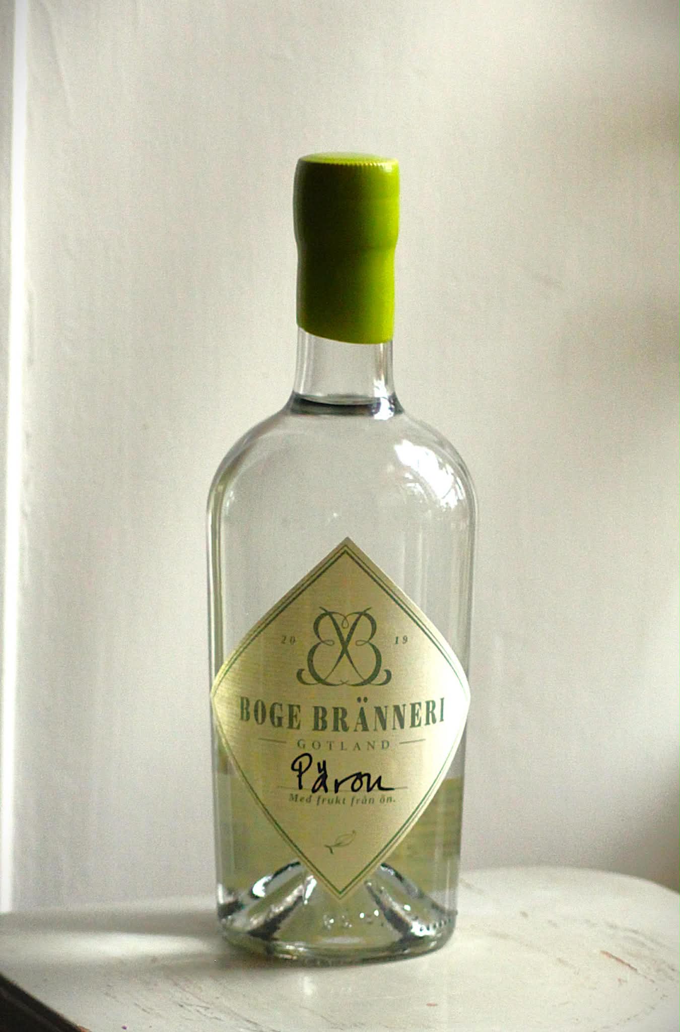 Päron är en klassisk dubbeldestillerad Eau de Vie på främst trädgårdsfrukt men även lite vildsådder. Gotländska trädgårdar har en stor mängd äldre päronträd med en stor andel så kallade gråpiggar, vilka lämpar sig väldigt bra för destillering. Efter skörd krossas päronen och jäsningen sker i tankar i utomhustemperatur med en lång jäsperiod som följd av den låga temperaturen. Efter jäsning destilleras fruktmäsken två gånger till ca 65%, därefter får spriten vila minst 6 månader innan den späs till rätt alkoholhalt och buteljeras. Päron är en hyllning till fruktens smaker, skapad med stor respekt för råvaran och hantverket.